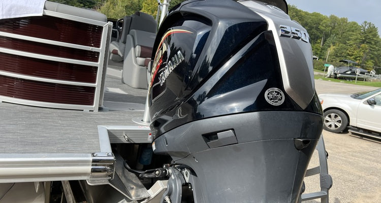Dark red tritoon with a high output 250hp Yamaha outboard, max capacity is 13 persons. Ski and tubing capable. Top speed 45mph. Bimini top included.